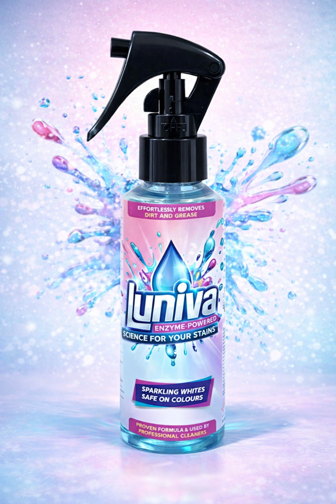 Luniva is a premium enzymatic stain dissolver designed to break down the toughest grime before your wash cycle begins. Whether it’s body oils, sweat, grease, or protein-rich food, Luniva penetrates deep to dissolve it — so your detergent can lift it away with ease.