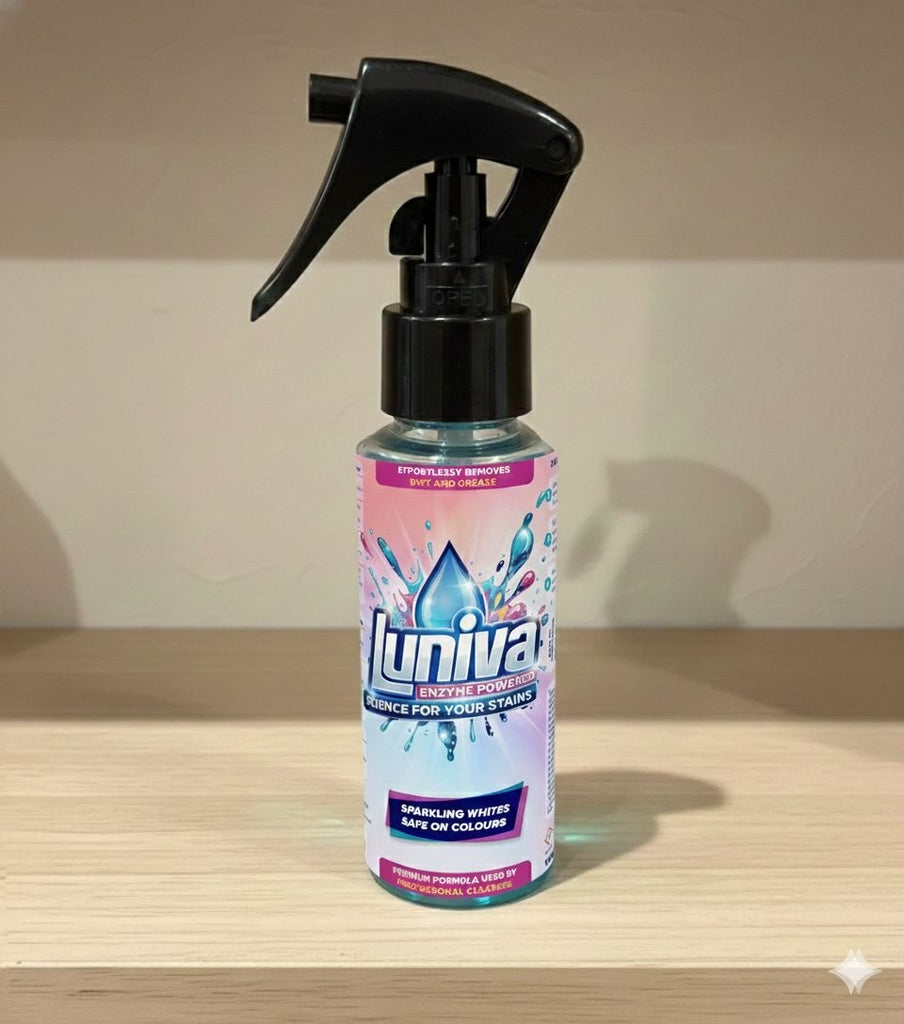 Safe on whites and colours, Luniva is lab-formulated, biodegradable, and fabric-safe. No harsh chemicals. No scrubbing. No drama. Just powerful pre-wash science in every drop.